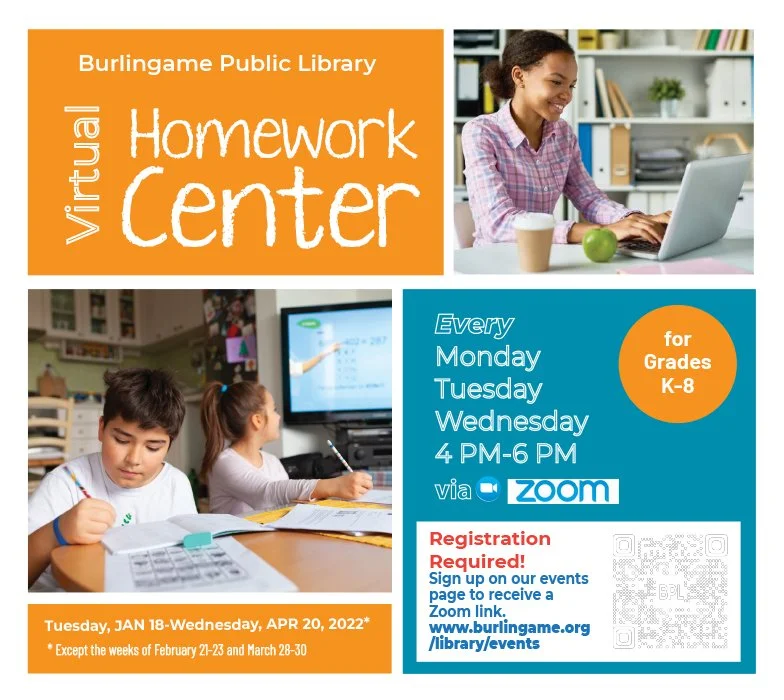 Virtual Homework Center runs over Zoom every Monday, Tuesday, and Wednesday from 4pm-6pm.